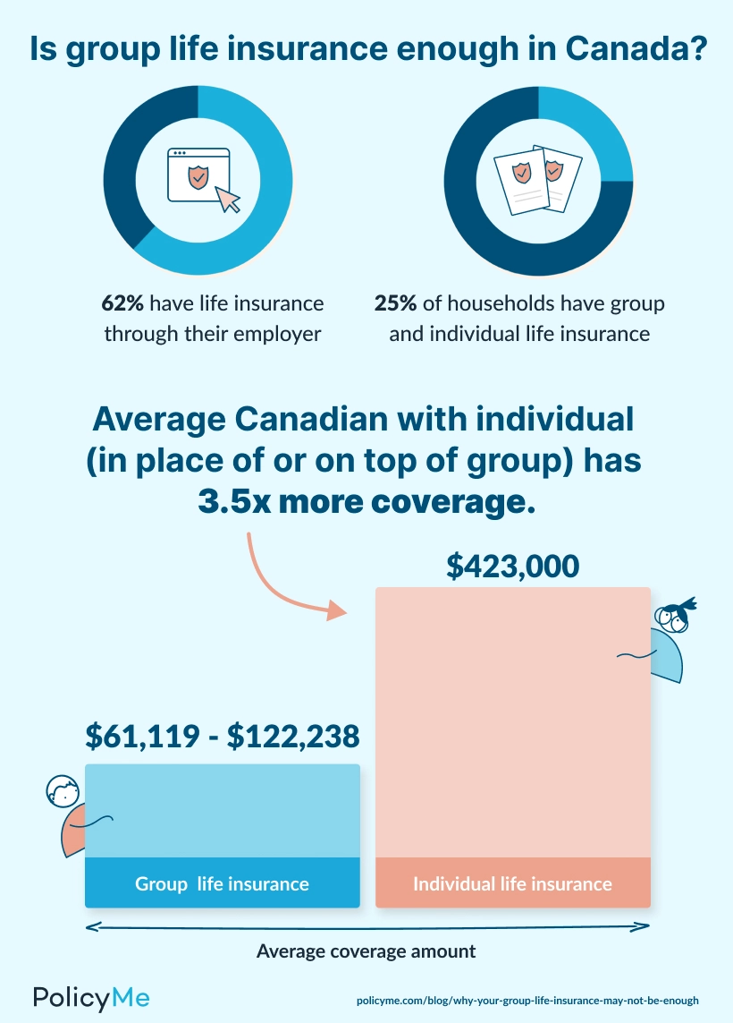 The average Canadian with an individual policy has approximately 3.5x more coverage than someone with only a group policy in place.