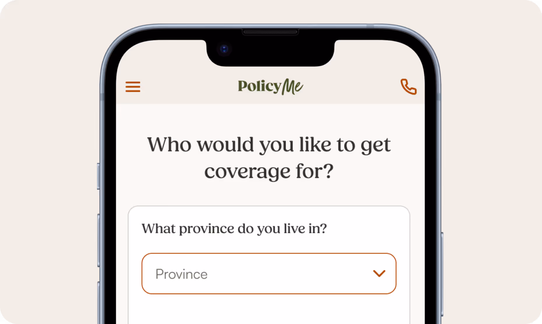 To get a health insurance quote from PolicyMe, simply fill out the quick questionnaire with your basic details like age and province. We'll instantly provide a personalized plan and recommendation quote for you.